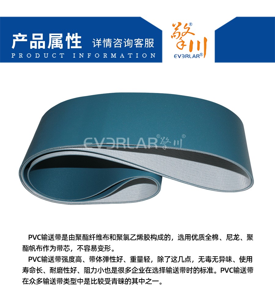 PVC輸送帶是由聚酯纖維布和聚氯乙烯膠構(gòu)成的,選用優(yōu)質(zhì)全棉、尼龍、聚酯帆布作為帶芯,不容易變形。