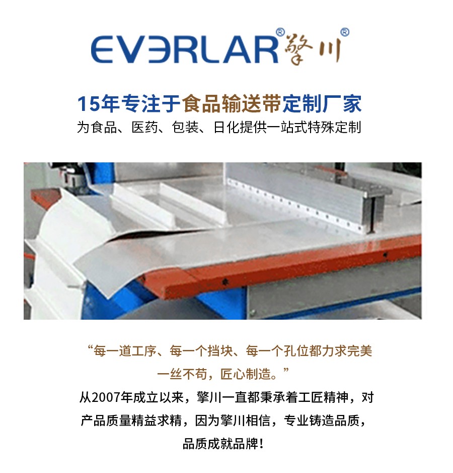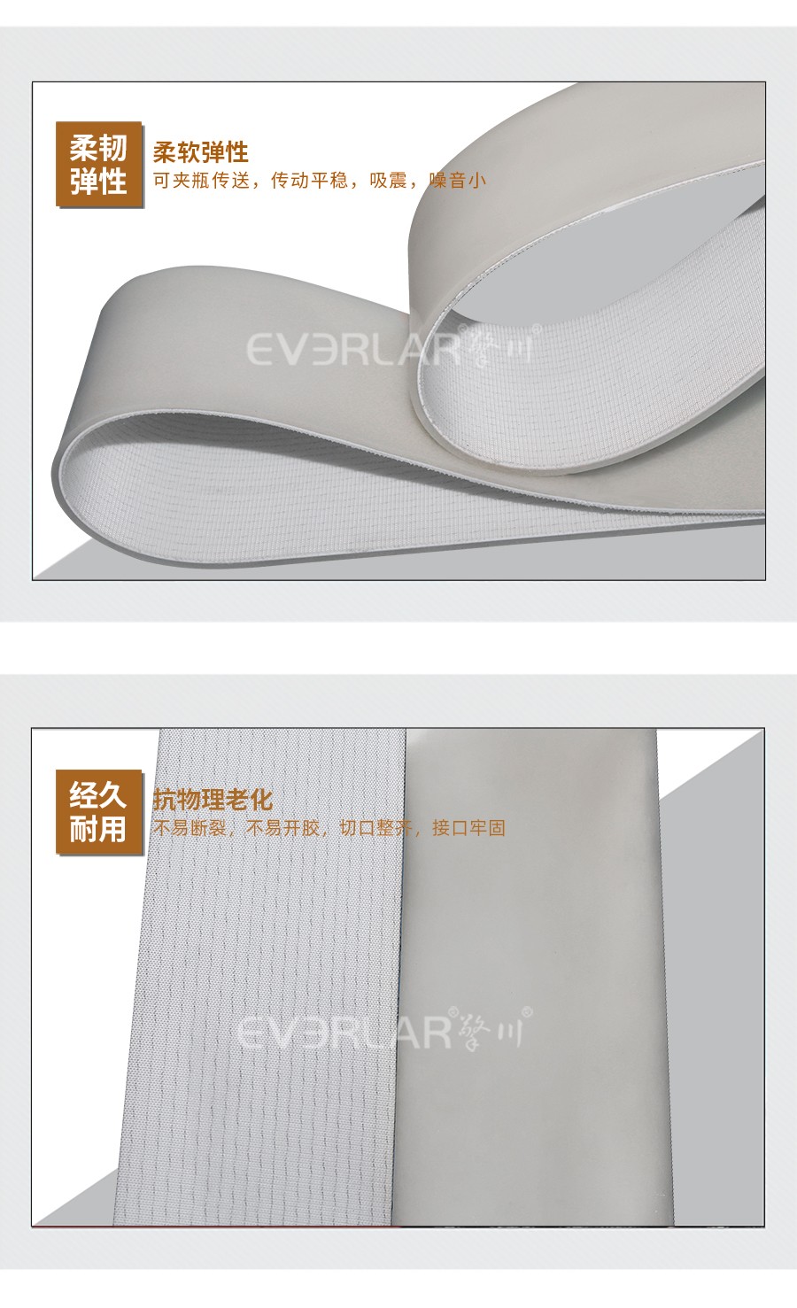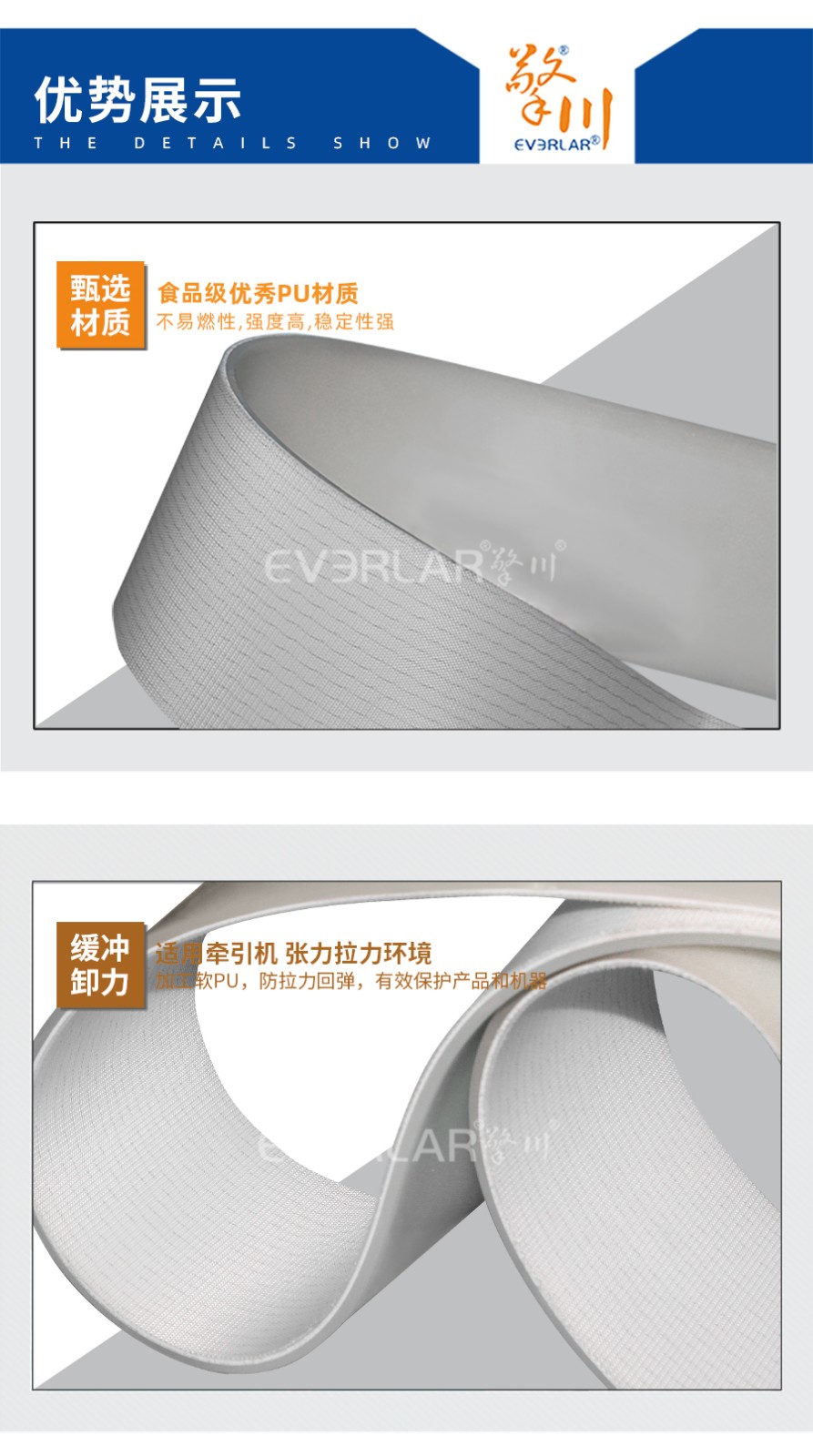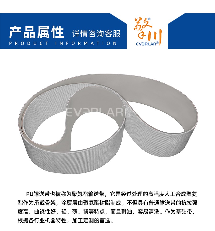 PU輸送帶也被稱為聚氨酯輸送帶,它是經(jīng)過處理的高強(qiáng)度人工合成聚氨酯作為承載骨架,涂覆層由聚氨酯樹脂制成。不但具有普通輸送帶的抗拉強(qiáng)度高、曲饒性好、輕、薄、韌等特點(diǎn),而且耐油,容易清洗。在食品行業(yè)使用比較多,因此用在食品行業(yè)時(shí)也叫食品輸送帶。