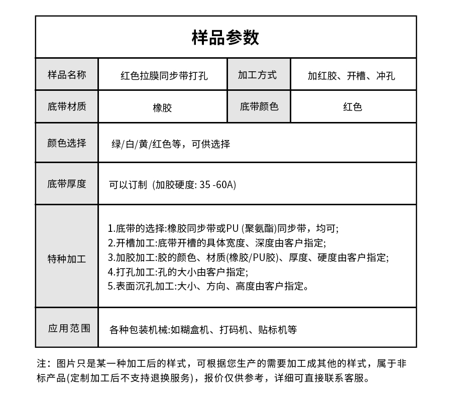 產(chǎn)品名稱(chēng):紅色拉膜同步帶打孔
