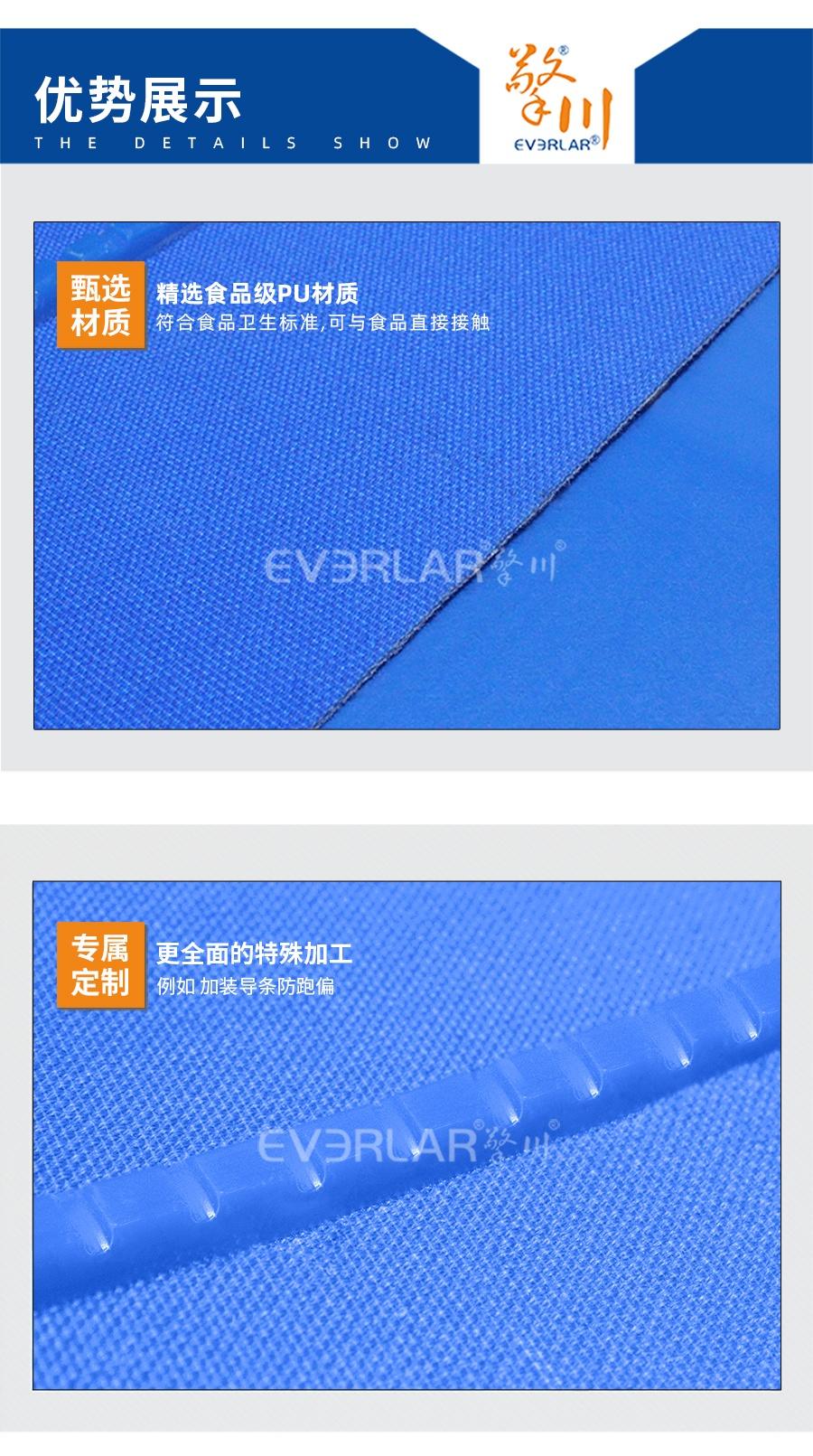 PU輸送帶也被稱為聚氨酯輸送帶,它是經(jīng)過處理的高強度人工合成聚氨酯作為承載骨架,涂覆層由聚氨酯樹脂制成。不但具有普通輸送帶的抗拉強度高、曲饒性好、輕、薄、韌等特點,而且耐油,容易清洗。在食品行業(yè)使用比較多,因此用在食品行業(yè)時也叫食品輸送帶。