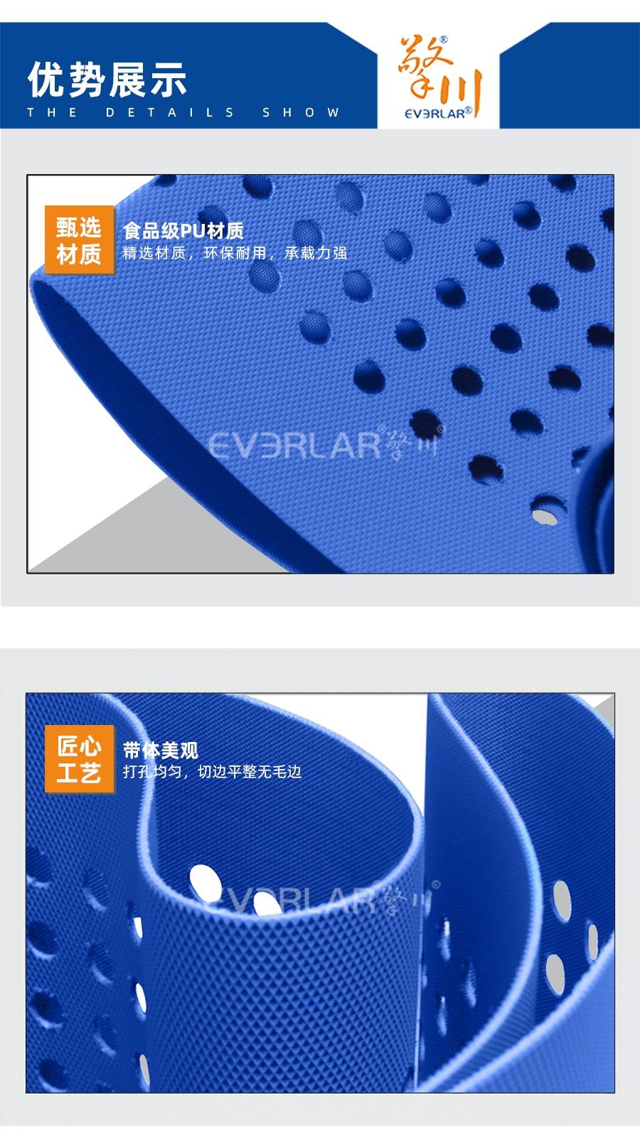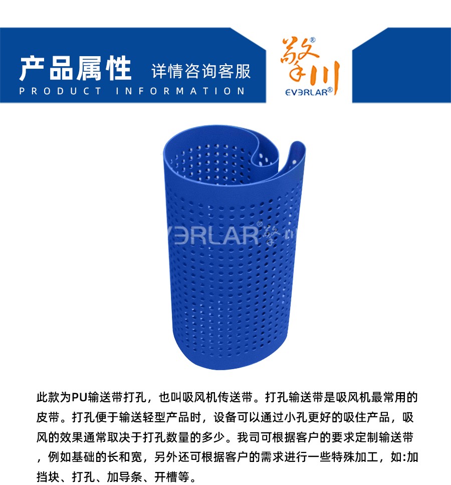 • 產(chǎn)品名稱:藍(lán)色鉆紋PU輸送帶打孔