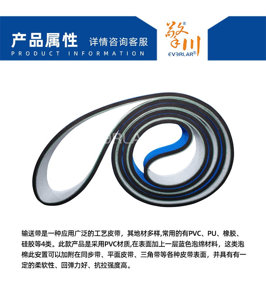PVC輸送帶是由聚酯纖維布和聚氯乙烯膠構(gòu)成的,選用優(yōu)質(zhì)全棉、尼龍、聚酯帆布作為帶芯,不容易變形。