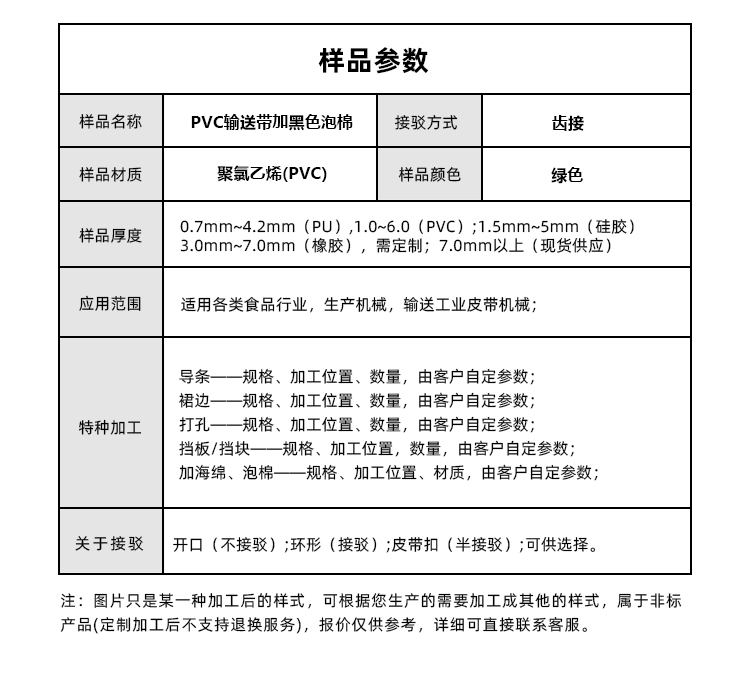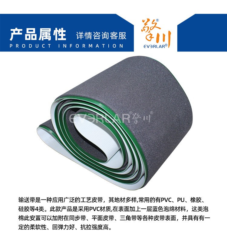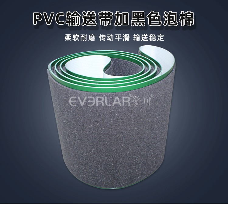 綠色PVC輸送帶加黑色泡棉耐磨耐腐蝕食品加工機械工業(yè)皮帶定制