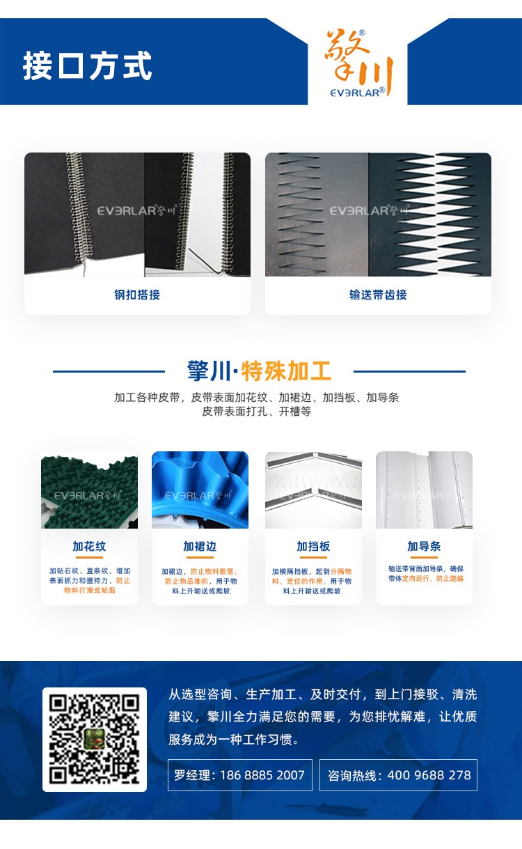 藍色易清潔帶加導(dǎo)條耐油易清潔食品運輸機工業(yè)皮帶定制