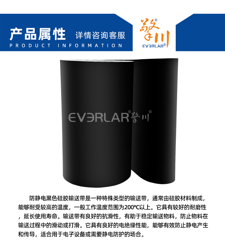 產(chǎn)品名稱:防靜電黑色硅膠輸送帶防粘耐高溫防靜電工業(yè)皮帶