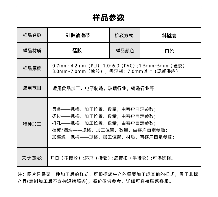 • 產(chǎn)品名稱:硅膠輸送帶耐磨耐腐蝕耐高溫工業(yè)皮帶