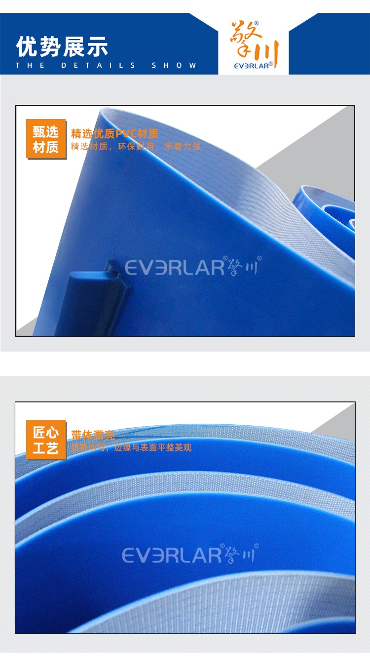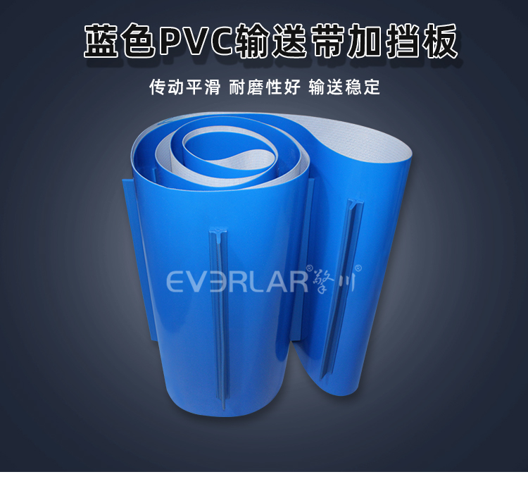 藍色PU輸送帶加擋塊耐磨耐油耐腐蝕工業(yè)皮帶