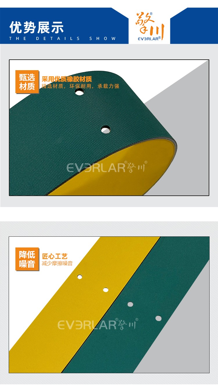 產(chǎn)品名稱:黃綠片基帶加打孔低噪音抗撕裂印刷紡織包裝行業(yè)高速傳動(dòng)帶