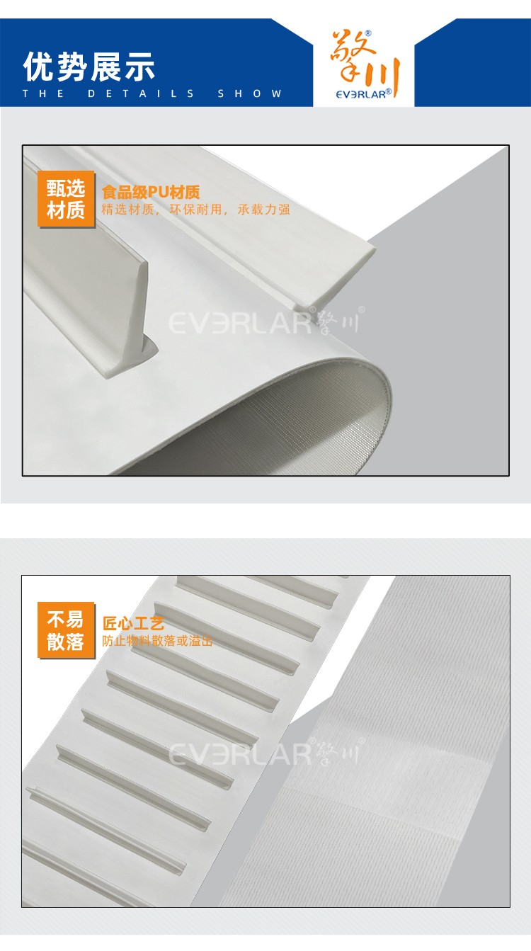 白色PVC輸送帶加擋板裙邊耐磨防側漏食品包裝機提升機輸送流水線皮帶